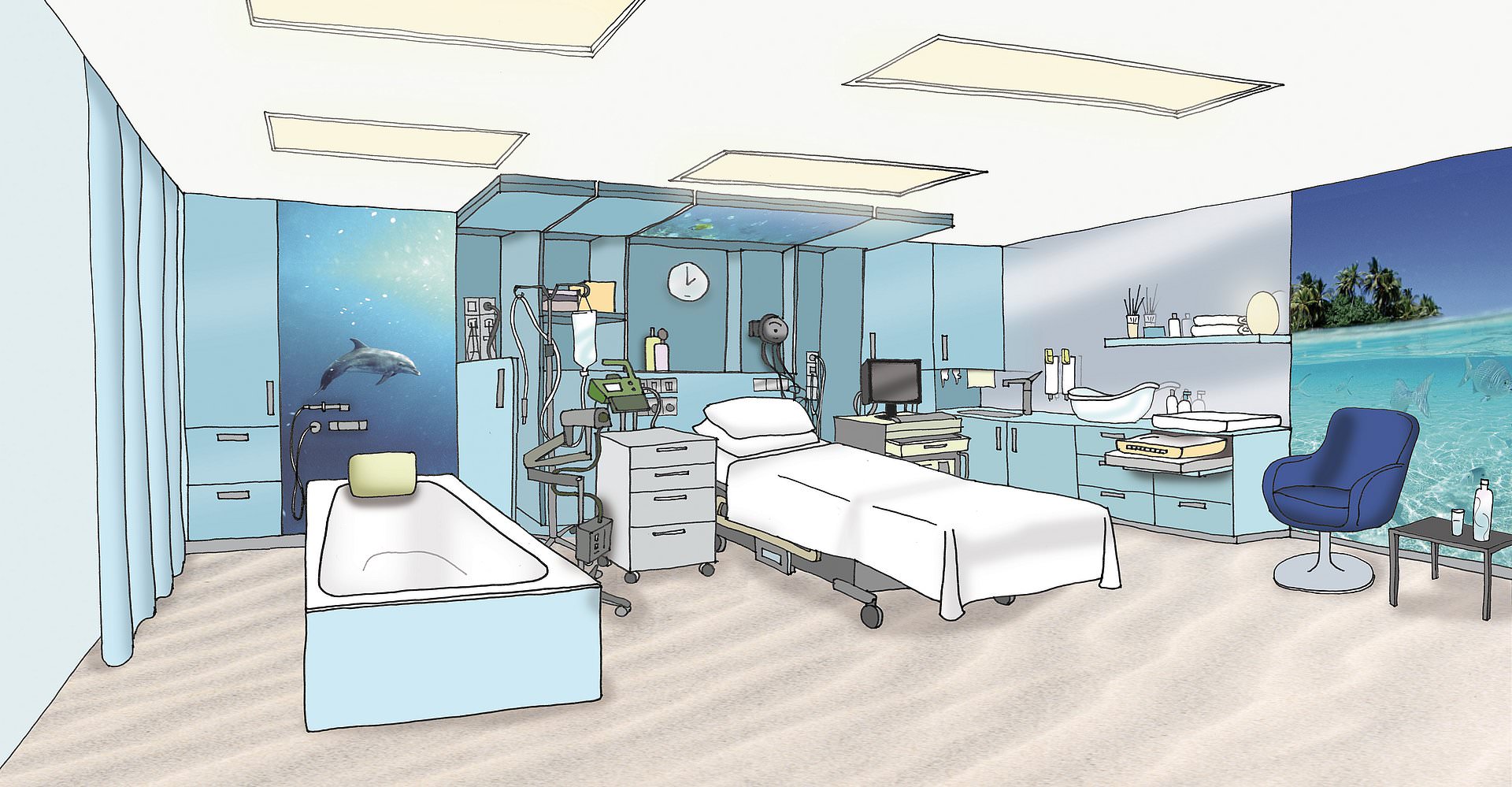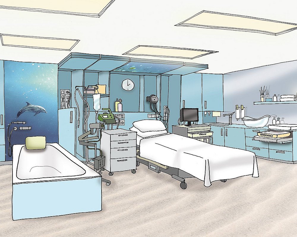 In de ruimtelijke concepten van de verlos- en verblijfsruimtes is met name het contact tussen moeder en kind cruciaal. Er zijn grote glazen ramen tussen ruimtes ontworpen, zodat de moeder nooit het contact met haar baby verliest.