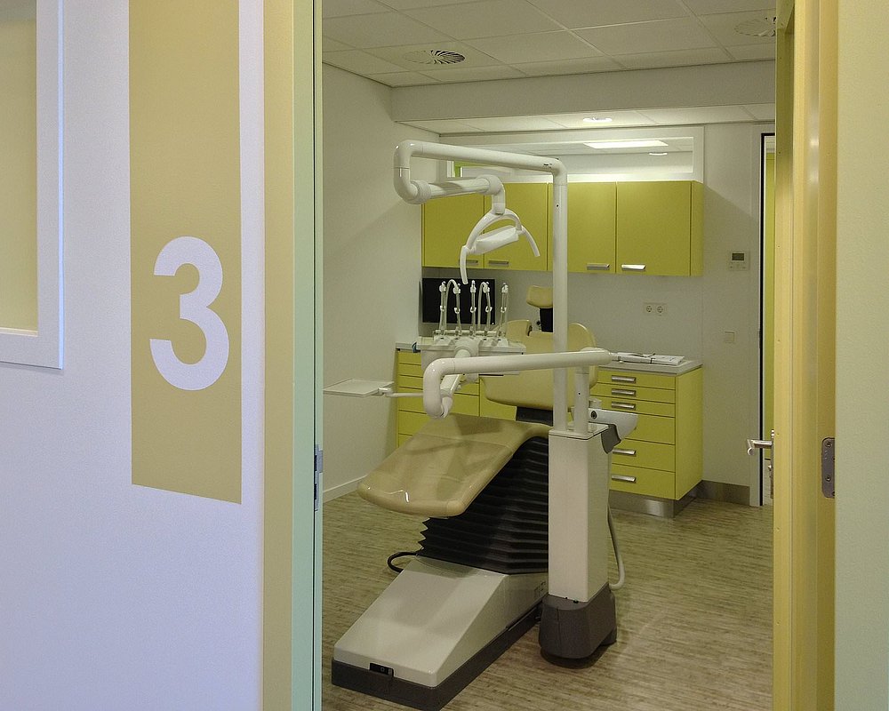 Voor de nieuwe tandartspraktijk Denthuijse in Zoetermeer ontwierp Bureau Kroner een stijlvol interieur.