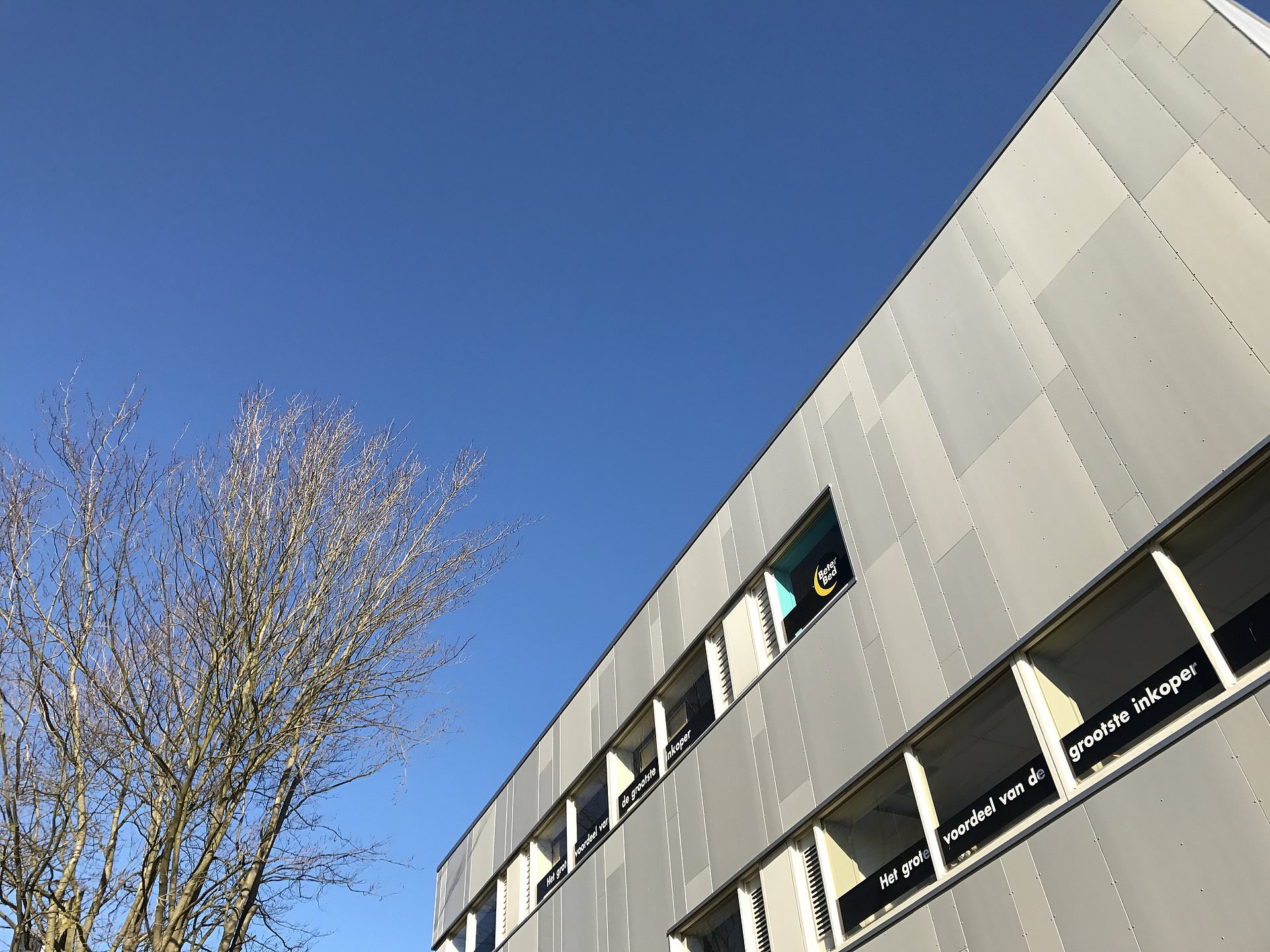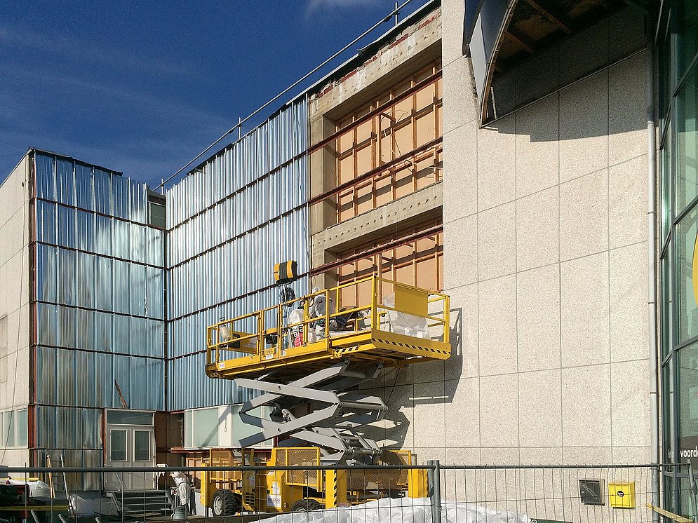 Een vroeg voorbeeld van een weidewinkel met verschillende grote winkelketens in de periferie van Eindhoven uit de jaren zeventig, met kenmerkende betonnen elementen, was hard toe aan een gevelrenovatie: de betonplaten begonnen los te laten en uit de gevel te vallen.