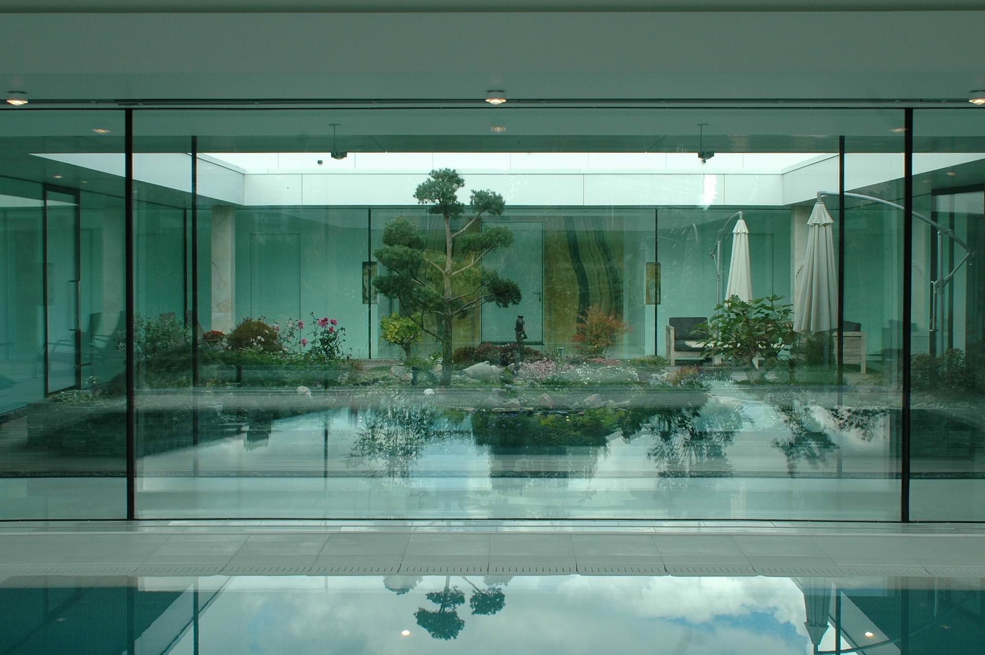 Het te bebouwen vloeroppervlak wordt maximaal benut, zodat er plaats is voor een ruime patio in het midden van de woning. De ruimtes zijn rondom deze patio gegroepeerd, met verschillende gradaties van openheid en geslotenheid.